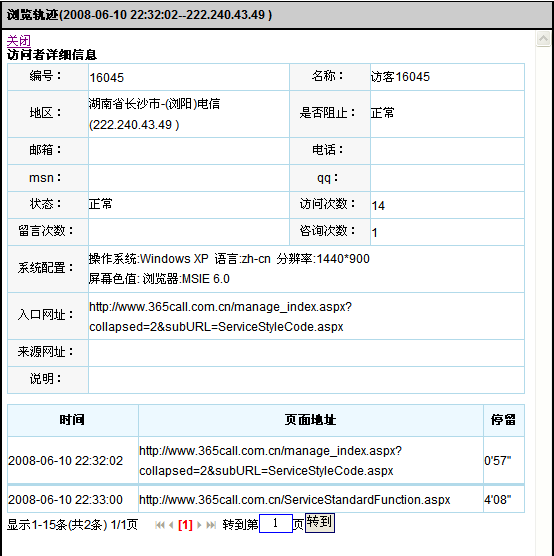 點(diǎn)擊上圖中某一條查詢結(jié)果的“詳細(xì)”操作,彈出該訪問者的詳細(xì)信息: