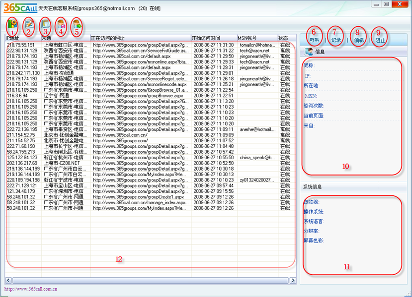12- 訪客列表欄: 網(wǎng)站的訪問者詳細(xì)列表。 |