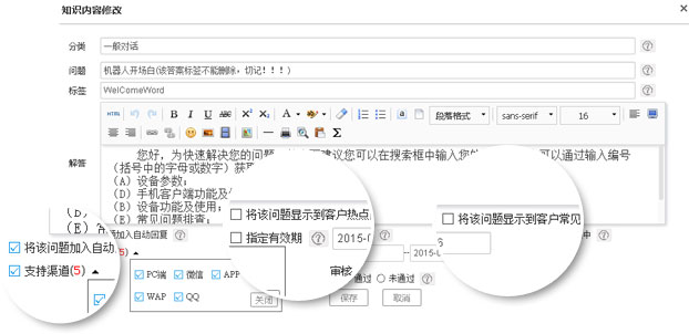 365webcall智能知識(shí)庫(kù)全媒體接入,統(tǒng)一管理、智能解答、熱點(diǎn)問題、常見問題、人員權(quán)限管理。